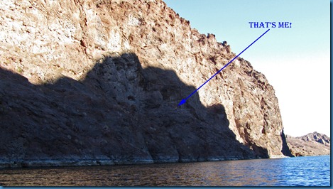 We went for another kayak paddle on Lake Mead. This time we headed for “Saddle Island”, only an island at high water, which hasn’t happened in awhile. We paddled 4 and a half miles and I fished for striped bass the entire time…no bites. That’s alright. Everyone I’ve spoken to has gotten skunked. The weekly fishing report also says its been slow. I’m not doubting my fishing skills just yet! The burning 70 degree heat and flat calm was almost too much for us. We had to duck into the shade a couple of times for relief. Life is tough!