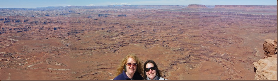 Sadly, Mary had to leave us. We decided to follow her to Moab. On the way we did some exploring. First at “Newspaper Rock” where hundreds of petroglyphs are carved into a large rock panel. Then we detoured nearly 25 miles to “Needles Overlook” for an incredible view and a geocache. On the way, I spotted a lone pronghorn back-dropped by cool sandstone formations and the fresh snow-covered La Sal Mountains…the picture turned out pretty good, but the real scene was way better! Then we headed to Moab and had a good Mexican food lunch, checked out our next campground, said goodbye to Mary, got propane and a few supplies, and headed back to the Needles Outpost.