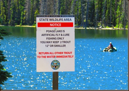 The next day we drove up to Poage Lake. It’s an “artificial flies and lures only” lake. In addition you can only keep two smaller trout. I took my time fishing the entire perimeter of the lake and really enjoyed it! I caught about 15 and lost an equal number of pretty cutthroat trout. I’d spot the trout cruising 10-50 feet from the bank, gently drop my small grasshopper fly a few feet ahead of them, and watch them come up and slurp it in…It was so much fun!