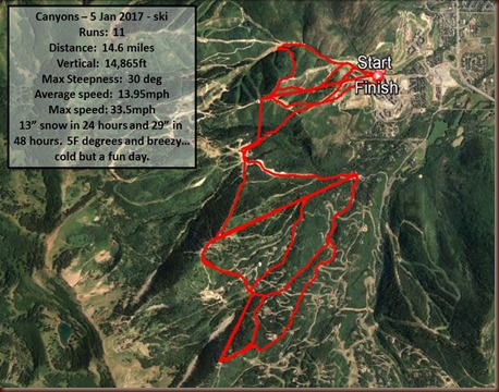 Ski route at Canyons / 17 inches of new snow…excited for another powder day!